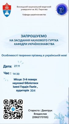 27 листопада відбулося засідання студентського наукового гуртка кафедри українознавства під керівництвом доцентки Лілії Дмитрук.