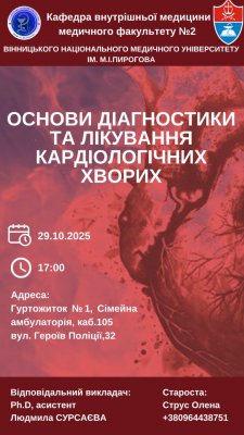 1.Назва кафедри – ВНМУ імені М.І. Пирогова, кафедра внутрішньої медицини медичного факультету №2
