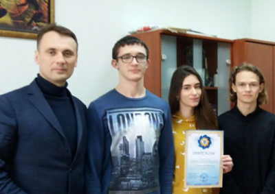 Проф. Вернигородський С.В. із студентами – переможцями ІІ етапу Всеукраїнської студентської олімпіади з навчальної дисципліни «гістологія, цитологія, ембріологія» м.Полтава, 2019р.