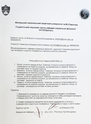 21018 м.Вінниця,вул. Пирогова 56, кафедра нормальної фізіології
