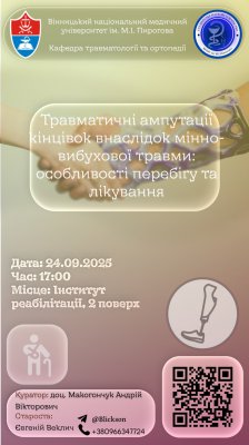1.Назва кафедри – ВНМУ імені М.І. Пирогова, кафедра травматології та ортопедії