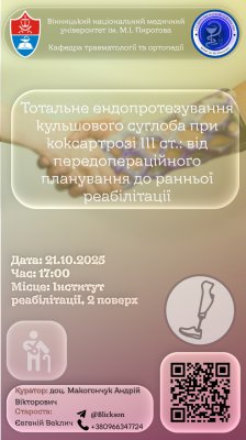 «Тотальне ендопротезування кульшого суглоба при коксартрозі ІІІ ст.: від передопераційного плагування до ранньої реабілітації» |