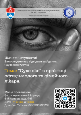 Студентська олімпіада з офтальмології відбудеться 05.05.2025 р. о 15:00 в 15 корпусі ВОКЛ ім. М.І. Пирогова
