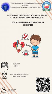Мета створення студентського наукового гуртка з педіатрії у Вінницькому національному медичному університеті ім. М.І. Пирогова полягає у поглибленому вивченні дисципліни та залученні талановитої молоді до науково-дослідної роботи поза межами обов'язкової навчальної програми. Гурток створений для студентів, які бажають поглибити свої знання вивчення складних кейсів з вузьких напрямків - дитячої пульмонології, нефрології, кардіології, гематології, медичної генетики.