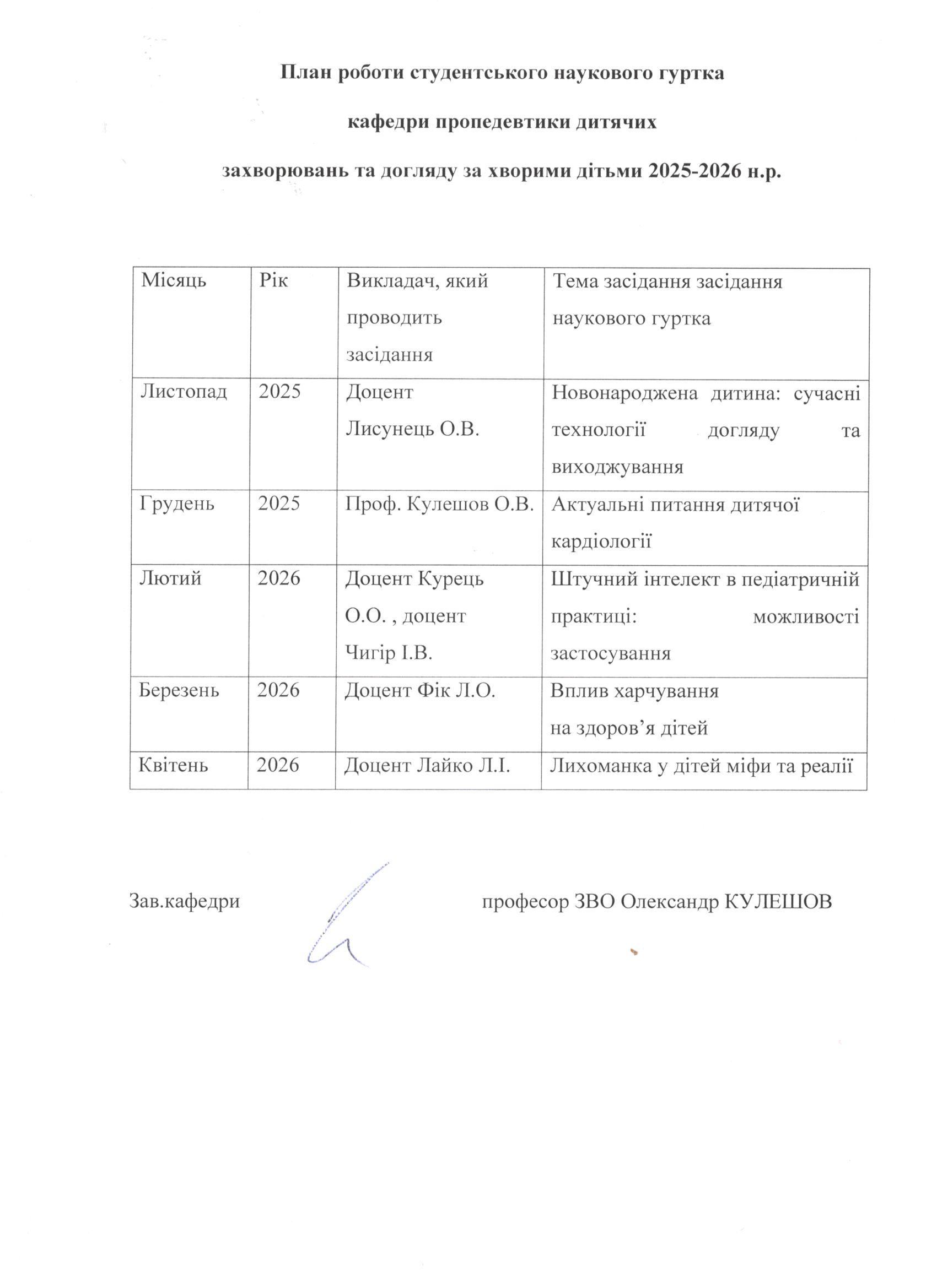 З 1 вересня 2024 року кафедру пропедевтики дитячих захворювань та догляду за хворими дітьми очолює професор, д. мед. н. Кулешов Олександр В'ячеславович.