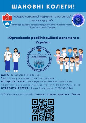 14 жовтня 2025 року на базі ДУ «Вінницький обласний центр контролю та профілактики хвороб МОЗ України» відбулося міжкафедральне засідання студентського наукового гуртка ім. проф. О.Г. Процек кафедри соціальної медицини та організації охорони здоров’я та к