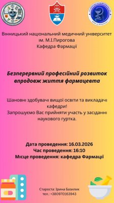 План роботи студентського наукового гуртка кафедри фармації ВНМУ ім. М.І. Пирогова