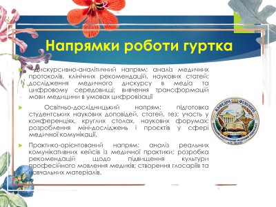 Тут ви зможете засвоїти основи професійної комунікації з пацієнтами, вивчити медичні терміни, поліпшити навички слухання, вдосконалити знання будови тіла та дізнатися більше про функціонування органів і систем англійською.
