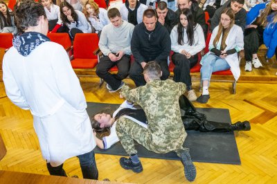 Гостьову лекцію «Фізична терапія після надання домедичної допомоги в зоні бойових дій» організували викладачі кафедри спортивної медицини, фізичного виховання та реабілітації.