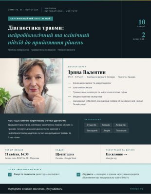 Запрошуємо студентів, інтернів, аспірантів, викладачів, лікарів та психологів на сертифікаційний курс лекцій «Діагностика травми: нейробіологічний та клінічний підхід до прийняття рішень»