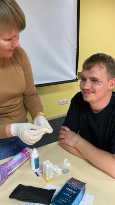 Завідувачка кафедри очних хвороб Катерина Гріжимальська й доцентка Юлія Салдан провели для учасників курсу лекції з фізіології та анатомії ока, тренінг з догляду за очними протезами. До спільного профілактичного огляду доєдналась професорка кафедри шкірних і венеричних хвороб ВНМУ Світлана Дмитренко.