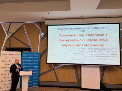 - Доповідь професора кафедри мікробіології Олександра Назарчука була присвячена аналізу сучасних аспектів бактеріальних інфекцій у поранених та обпечених пацієнтів.