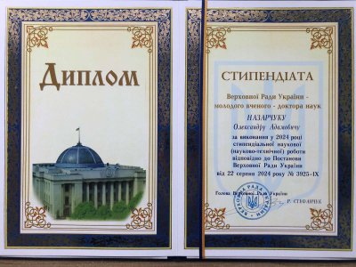 З рук голови ВР України Руслана Стефанчука Олександр Адамович отримав диплом стипендіата Верховної Ради, що їх присуджували молодим вченим – докторам наук (за 2024 рік).