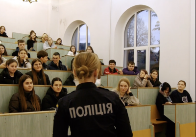 Разом із представницями поліції зі студентами спілкувалася доцентка кафедри педагогіки та психології ВНМУ Ірина Потоцька. Вона розповідала слухачам і слухачкам про гендерно зумовлене насильство — його різновиди, фактори й ризики, про способи реагувати та методи протидії.